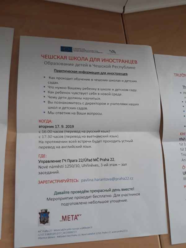 Dne 17. 9. 2019 se v rámci projektu MČ Praha 22 – Místní akční plán rozvoje vzdělávání II, registrační číslo CZ.02.3.68/0.0/0.0/17_047/0008723, uskutečnil ve spolupráci Pracovní skupiny pro rovné příležitosti a META, o.p.s. interaktivní workshop cílený na podporu rovných příležitostí dětí a žáků s odlišným mateřským jazykem (OMJ).