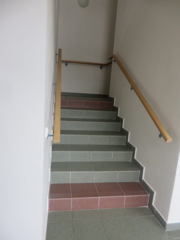 V přízemí, prvním a druhém patře je umístěno celkem 13 bytů. Jednotlivá patra jsou propojena osobním výtahem. Všechny průjezdy na chodbách jsou širší než 80 cm, manipulační prostor je dostatečný. Dveře do jednotlivých bytů jsou jednokřídlé (šířka 90 cm) s prahem (výška 2 cm). Na každém patře se nachází jeden byt, vhodný k úpravě pro užívání osobami s omezenou schopností pohybu.