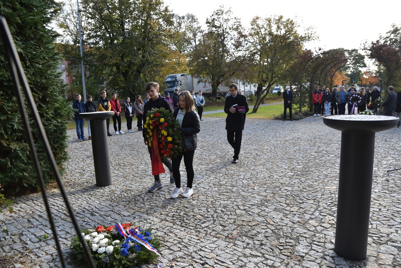 Trochu netradičně z důvodu školních prázdnin, již v úterý 26. 10. 2021 položili zástupci městské části, školských zařízení, církví a neziskových organizací věnce a kytice u uhříněveského pomníku padlých na Husově náměstí před Legionářským domem.