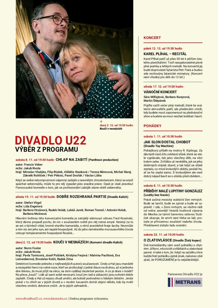 Vstupenky v prodeji na pokladně Divadla U22 a na portálu www.ticketportal.cz