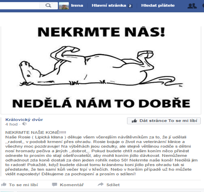 Děkuji všem za naše koně, že je nebudete krmit.