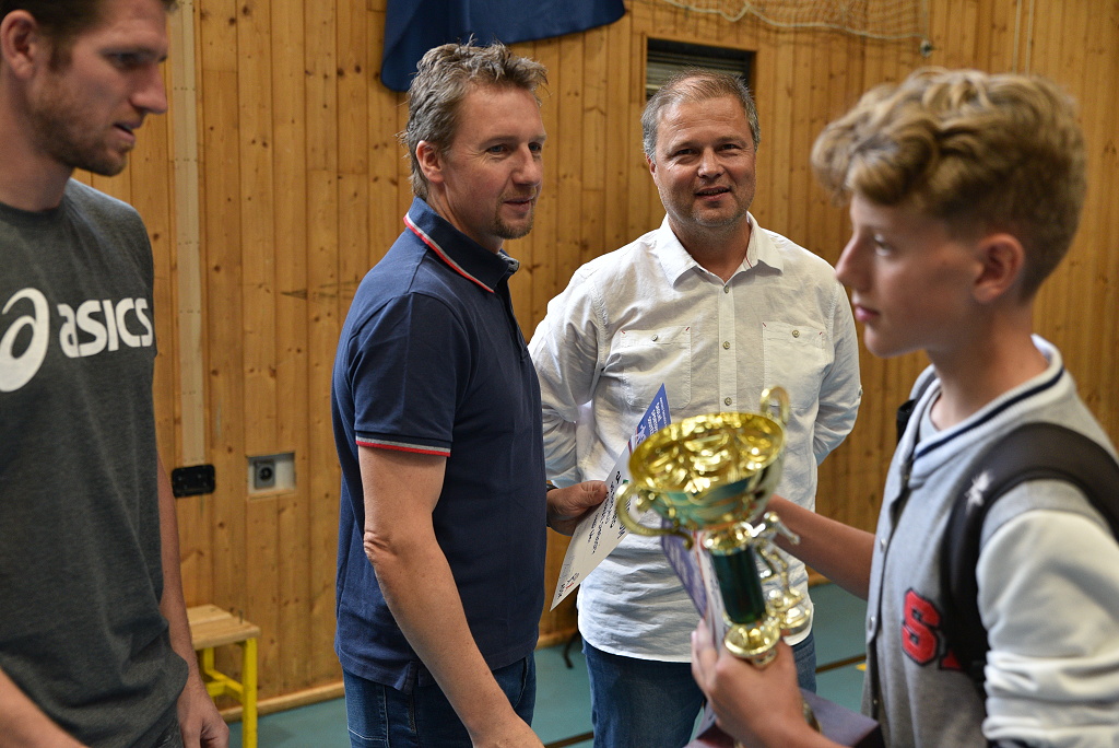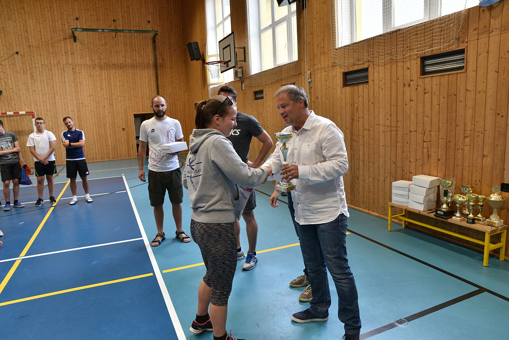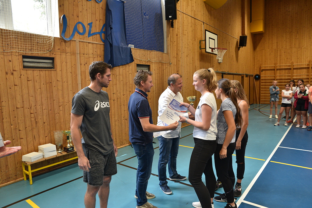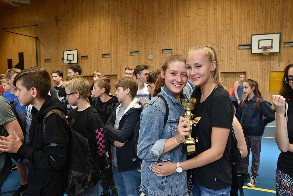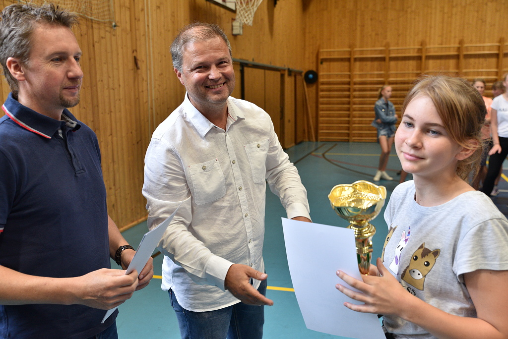 Soutěžilo se ve čtyřech disciplínách: přehazovaná, volejbal, kopaná a házená, vždy zvlášť holky a kluci. Jenom u fotbalu proti sobě stály týmy mladších a starších žáků. Ve všech disciplínách byla výhra 1:1, ale volejbal zvládla lépe "Obora" a vybojovala tak letošní pohár.