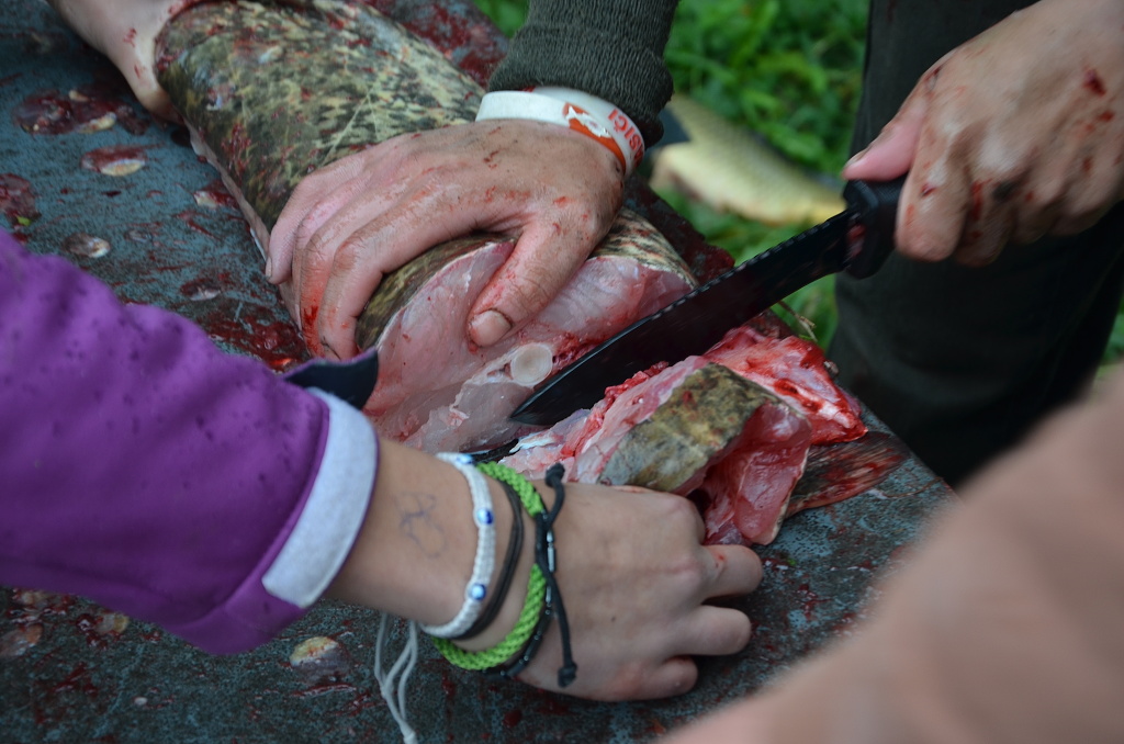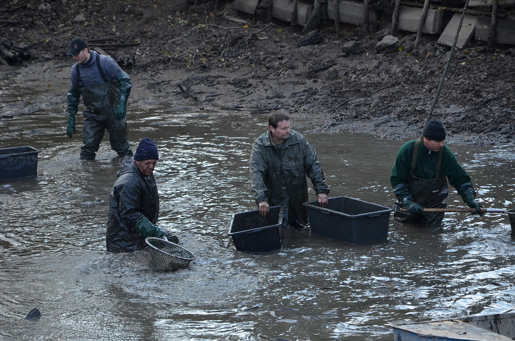 Všechny slovené ryby byly pečlivě zaevidovány a rozděleny do kádí odkud putovaly k dalšímu určení. Některé skončily ve Velké Vodici jiné půjdou na vánoční stůl. A jedna z těch největších – sumec byl hned odpoledne stažen, rozporcován a ugrilován v areálu rybářů a s chutí sněden. A kdo chtěl mohl si dát k pití Aloise.