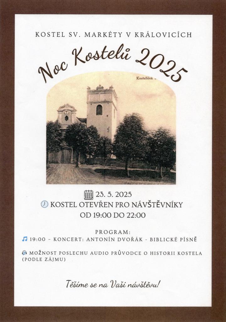 Kostel sv. Markéty v Královicích otevírá své brány pro návštěvníky 23. května 2025. Od 19:00 do 22:00 se můžete těšit na koncert Antonína Dvořáka, kde zazní jeho Biblické písně. Pro zájemce bude k dispozici také audio průvodce, který vás seznámí s historií tohoto krásného kostela.