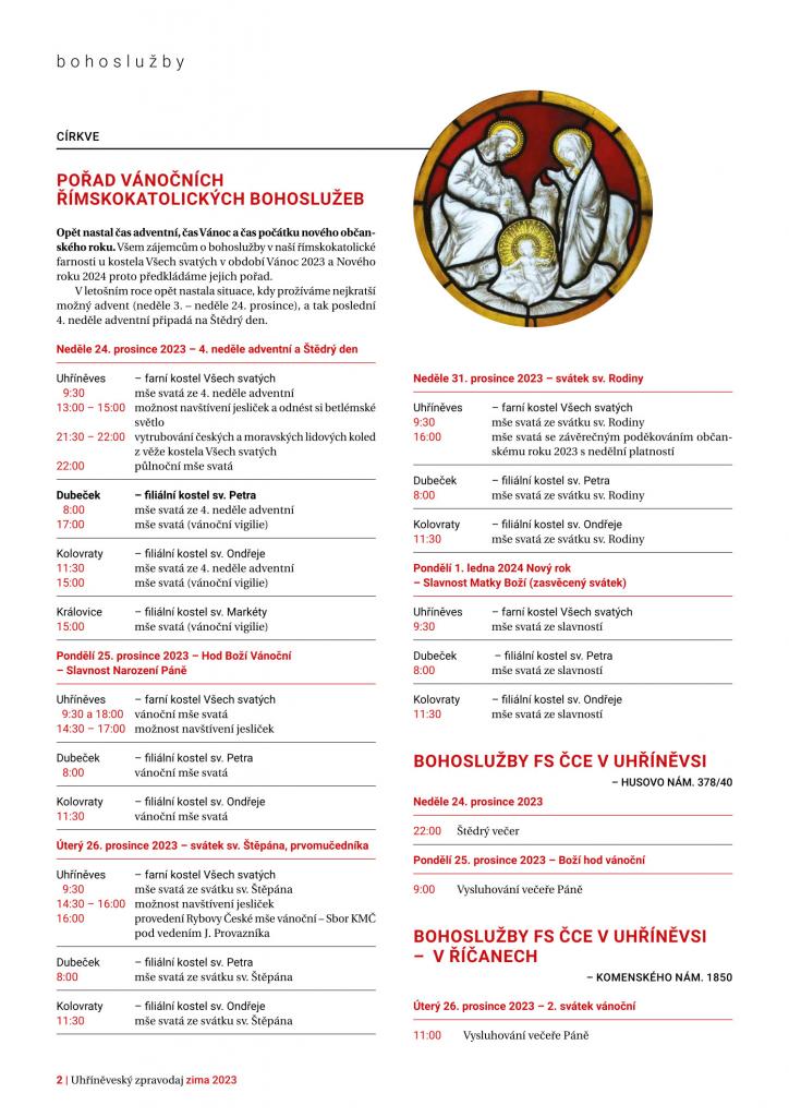 Přehled vánočních bohoslužeb