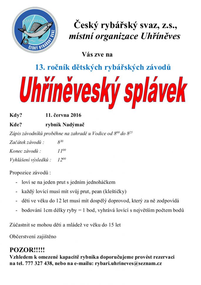 na tel. 777 327 438, nebo na e-mailu: rybari.uhrineves@seznam.cz