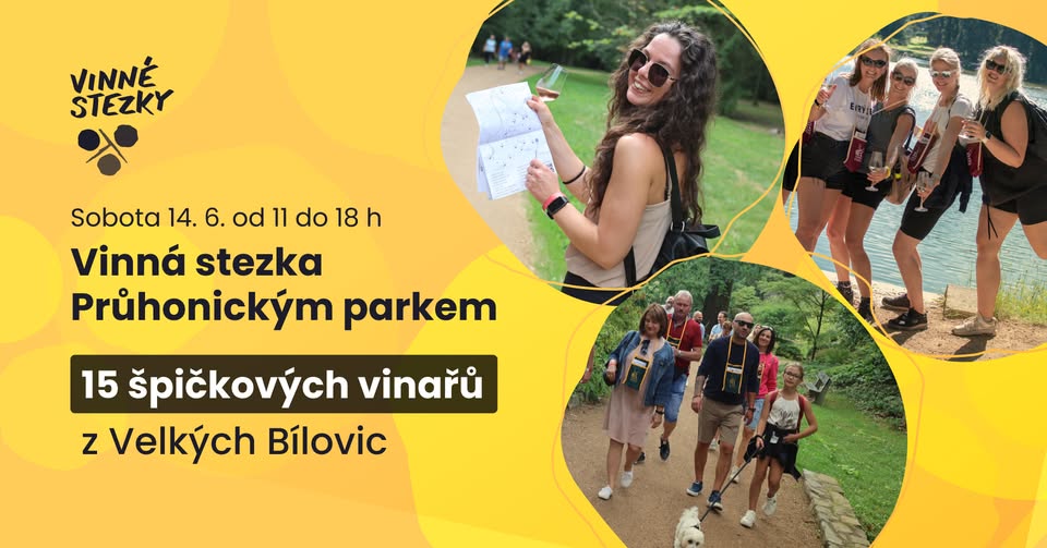 Třetí ročník Vinné stezky v Průhonickém parku je tady! Přijďte si užít jedinečné spojení špičkových vín a Průhonického parku. Co vás čeká? 15 vinařství z Velkých Bílovic, 90 pečlivě vybraných vzorků vín, 6 km pohodová trasa, degustační sklenička a katalog vín.