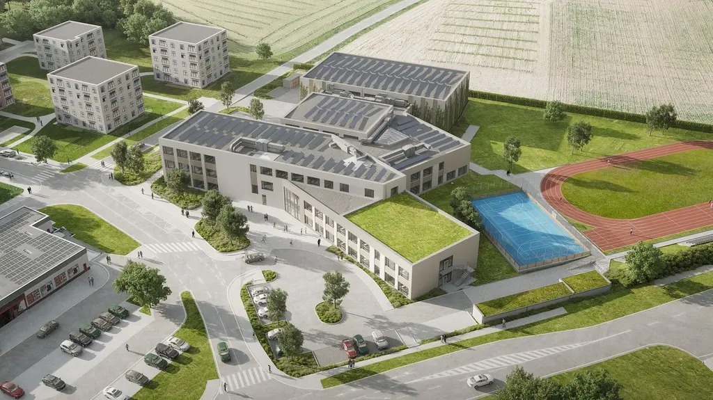 Koncept školy je navržen s ohledem na nízké budoucí provozní náklady díky využití obnovitelných zdrojů energie. Vytápění/chlazení bude zajištěno tepleným čerpadlem země/ voda. Větrání budovy bude řešeno nuceně s rekuperací vzduchu s vysokou mírou účinnosti. Na střeše budou osazeny fotovoltaické panely. Srážkové vody budou akumulovány pro závlahu vegetačních ploch. Střechy budou částečně řešeny jako vegetační. Budova bude vykazovat parametr pasivní stavby s konečnou potřebou tepla na vytápění budovy do 15 kWh/ (m²a).
