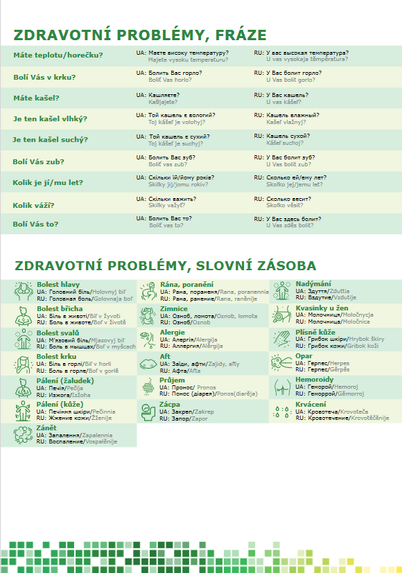KOMUNIKAČNÍ KARTA PRO LÉKÁRENSKOU PÉČI (UKRAJINŠTINA/RUŠTINA)